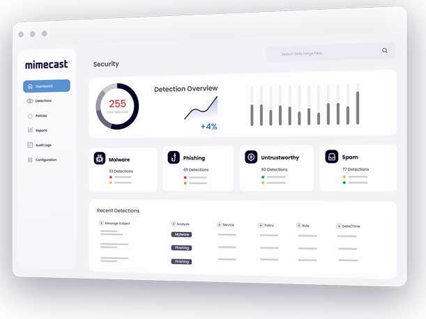Mimecast Advanced Email Security is a comprehensive, cloud-based email security system that guards email from a range of cyberattacks including spam, viruses and malware. Capabilities include threat intelligence and protection, data leak prevention and secure messaging.
