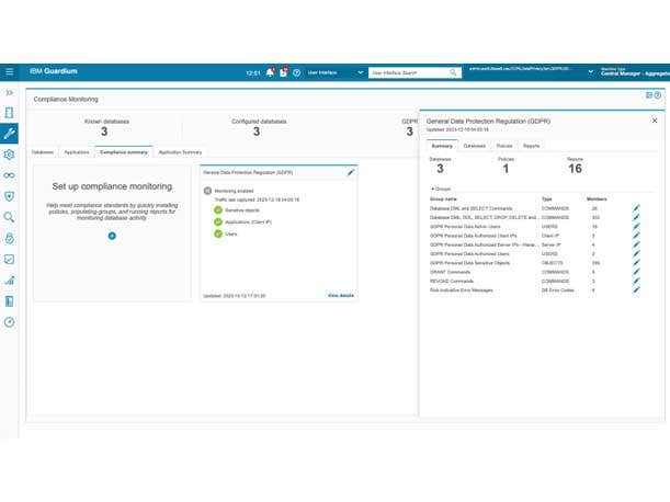 IBM Guardium Data Protection protects sensitive data in the cloud and in on-premises systems. GDP automatically discovers and classifies sensitive data across an enterprise and provides data activity monitoring and analytics, near real-time threat response workflows, and automated compliance auditing and reporting.
