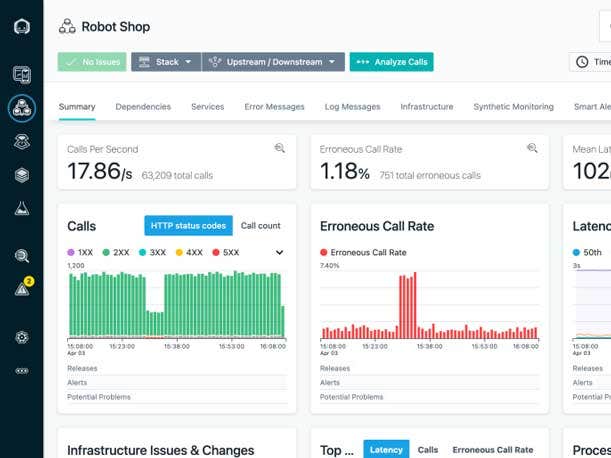 IBM Instana Observability automatically discovers, maps and monitors all services and infrastructure components, providing complete visibility across an application stack. It continuously captures every trace, detects changes in real-time, and provides detailed insights to automate root cause detection and problem resolution. Instana’s approach to observability includes built-in automation, application and infrastructure context, and AI-powered intelligent actions.