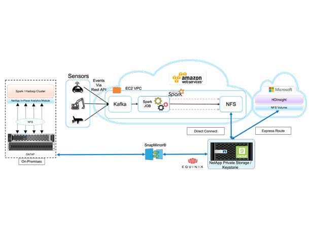 NetApp Hybrid Cloud combines public and private clouds, on-premises data centers and edge locations to run distributed workloads including web and content hosting, application development, data analytics and containerized applications.