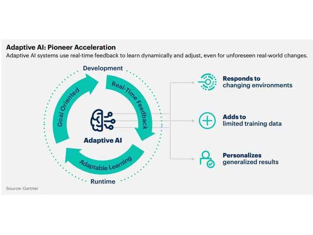 Adaptive AI systems continuously retrain models and learn within runtime and development environments based on new data to adapt quickly to changes in circumstances that were not foreseen or available during initial development.