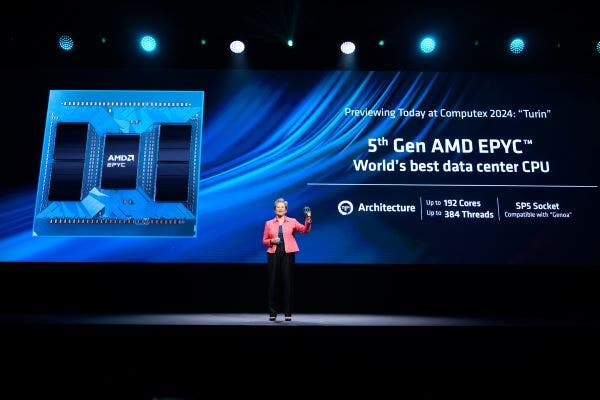 AMD CEO Lisa Su came to Computex armed with plenty of significant announcements too, revealing on Monday an expanded data center accelerator chip road map that starts with the 288-GB Instinct MI325X GPU coming later this year. She also disclosed that AMD plans to soon release the Ryzen AI 300 chips for AI-enabled laptops as well the Ryzen 9000 desktop series and teased the 192-core EPYC “Turin” processors coming later this year.