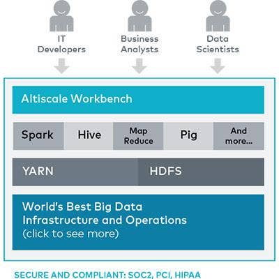 Altiscale provides a Big Data-as-a-Service for data scientists and application developers based on the Hadoop platform. Altiscale Data Cloud 4.0 features major upgrades to core Hadoop components such as HDFS and YARN. Also new is a comprehensive Spark-as-a-Service capability that supports all major versions of the Apache Spark cluster computing framework for processing large volumes of data.