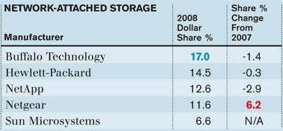 Buffalo Technology slipped slightly but still retained its place as the best-selling NAS vendor in 2008, edging out HP and NetApp.