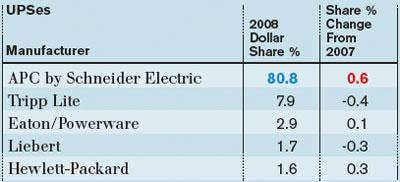 If you're talking UPSes, you're likely talking American Power Conversion (APC) by Schneider Electronics, which accounted for more than $4 out of every $5 sold through distributors last year, according to NPD.