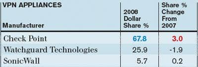 Check Point Software Technologies accounted for more than two-thirds share in this category in 2008, according to NPD, also gaining share compared with competitors.