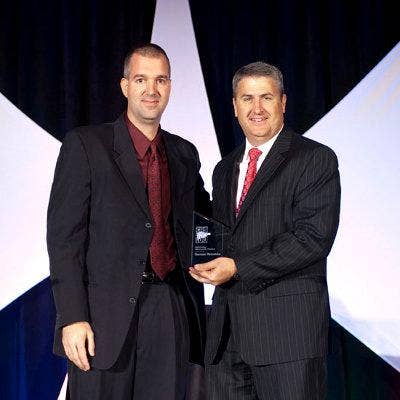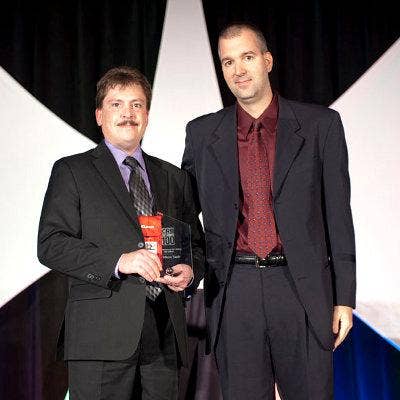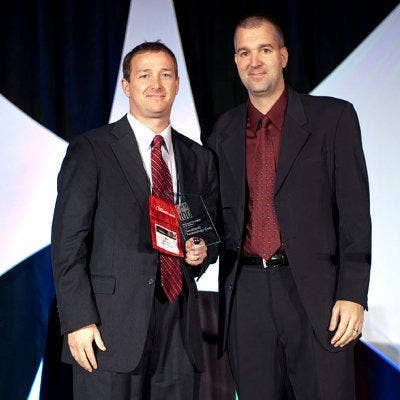 Accepting the award from CRN’s Rob Wright (right) is MicroTech CIO Preston Quick.