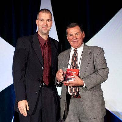 Accepting the award from CRN’s Rob Wright (left) is Summit 7 Systems’ Steve Beard, vice president.