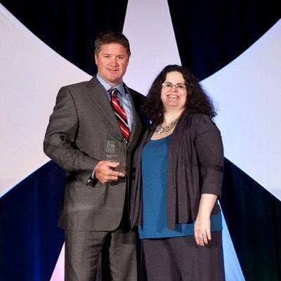 Accepting the award from CRN’s Jennifer Follett is Emergent’s Paul Kohler, executive vice president