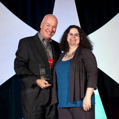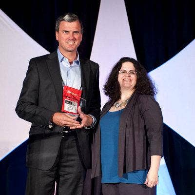 Accepting the award from CRN’s Jennifer Follett is Steve Charles, co-founder and executive vice president.