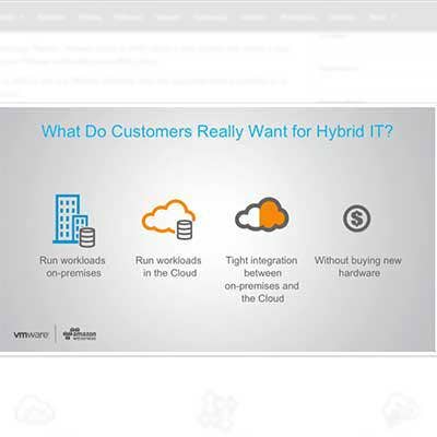 "It's really important that we were able to bring the full VMware stack: vSphere, VSAN, NSX, and their own hypervisor running natively on bare-metal instances on AWS," he said. "This provides all the features customers love about VMware with all the elasticity and security that customers have come to expect from AWS."
