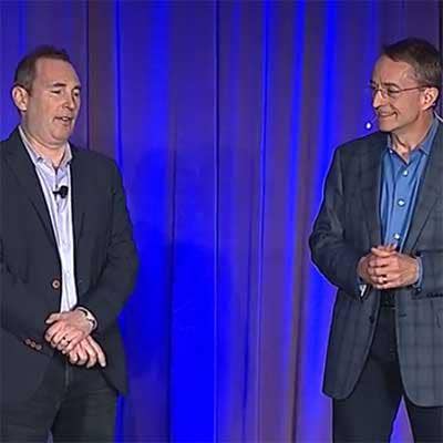 While rumors of the news had been circulating the week before, the actual unveiling of the new relationship was handled on-stage by Amazon Web Services Chief Executive Andy Jassy (left) and VMware CEO Pat Gelsinger (right).
