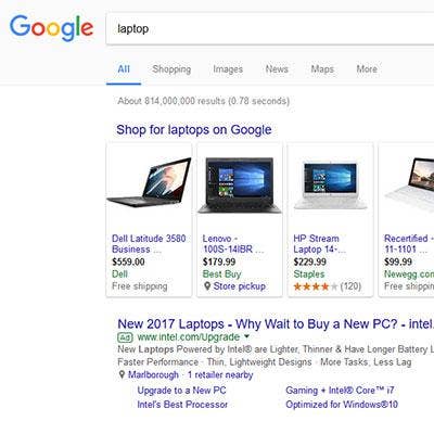 The case centers on Google's Shopping service, which shows comparisons between products and can be found through one of the tabs in the Google search engine (along with News, Images, etc). The service itself isn't the issue. The problem, according to the European Commission, is that Google prominently displays results from the service when users do search queries. For instance, when you Google "laptop," the search engine will typically display "Shop for laptops on Google" at the very top of the results, and underneath it will show links to sponsored products. Clicking on "Shop for laptops on Google" will take you to the Google Shopping service and a list of laptops on the market.