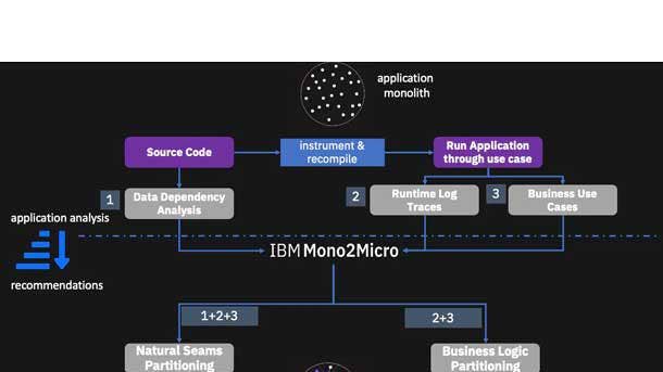 This new capability in WebSphere Hybrid Edition -- a solution for WebSphere Application Server deployments -- scans and analyzes enterprise applications and recommends how to rewrite them for containers and microservices. Enterprises can have hundreds to thousands of legacy applications that need writing to move from on-premises to the cloud, according to IBM. Mono2Micro produces code to deploy applications as microservices without much rewriting and while trying to maintain the external behavior and semantics of code written for on-premises.
