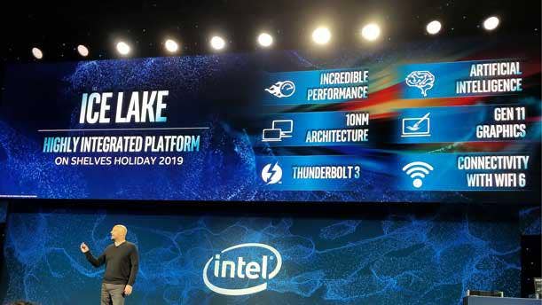 Intel revealed its long-awaited 10-nanometer Ice Lake CPU during its press conference Monday. The company indicated this processor type would specifically target mobile PCs, a la laptops and other portable form factors. On top of having a smaller transistor density than Intel's current generation of chips, Ice Lake will be the company's first CPU to use its new Sunny Cove microarchitecture, Gen11 integrated graphics and DL Boost technology for accelerating inference-based workloads. Ice Lake will also be Intel's first processor to natively support Thunderbolt 3 and Wi-Fi 6. The CPU is launching for the holiday 2019 season.