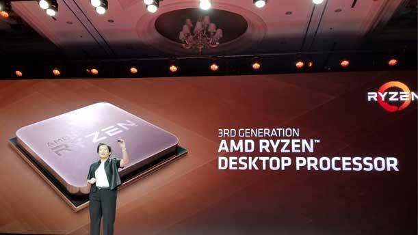AMD unveiled its much-anticipated 7-nanometer CPU, the third-generation Ryzen, during CEO Lisa Su's keynote Wednesday. The processor line will launch in mid-2019, with the top processor featuring eight cores and 16 threads. The CPU will also support PCIe 4.0, a first for a PC platform, according to Su. During her keynote, the company demonstrated the 7nm Ryzen's performance against Intel's flagship Core i9-9900K, showing a higher score using the benchmarking tool Cinebench while requiring 30 percent less power.