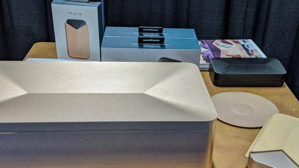 Trova Home is a luxury-style connected safe that is meant to protect discretionary items like medications, jewelry and recreational products in a slick but discreet aluminum design. The storage product, which can fit on a surface like a bureau or a side table, can be unlocked wirelessly via Bluetooth and Wi-Fi on a smartphone using secure biometric scanning. It comes with a motion sensor and a location tracker and sends alerts if the container has been accessed or moved by someone else. Inside, the container comes with a sliding tray and molded organizational ridges below as well as two internal USB charging ports. The device is battery powered. Its estimated to cost $700 when it begins shipping in the second quarter of this year.