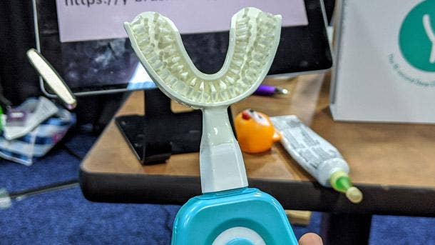 The Y-Brush seeks to revolutionize teeth brushing with a Y-shaped toothbrush that device maker FasTeesH claims can give your teeth a deep clean in 10 seconds. The Y-Brush is designed to fit in the top and lower jaws, almost like a mouth guard, for separate five-second cleanings, which are made possible by vibrations coming from the base of the Y-Brush. The Y-Brush, which consists of one handle, one brush, one storage stand and one USB charger, costs $129 and replacement brushes, which are recommended after six months of use, are $30 each. The Y-Brush will start shipping in the first quarter.