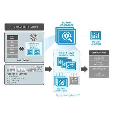 Big Monitoring Fabric 6.0 is the latest version of the network packet broker monitoring offering from Big Switch Networks. The offering delivers capabilities including a 160G bandwidth service node, packet masking capabilities, and dynamic virtual machine monitoring to allow VM-to-VM traffic visibility.