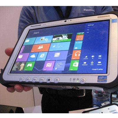 Called the Toughpad G1, the new 10.1-inch device was touted by Panasonic as being the most durable Windows 8 tablet on the market today. It runs an Intel "Ivy Bridge" Core i5 processor and boasts an 8.5-hour replaceable battery, all of which is encased in a frame that's dust-proof, water-proof and, perhaps most importantly, drop-proof.