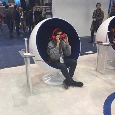 CES was flooded with virtual reality headsets from HTC, Oculus Rift and up-and-comers offering immersive demos of their VR goggles. But too often the side effect of the demos -- where users are thrust into total visual saturation inside 3-D worlds -- was an ’I feel queasy’ along with a ’Wow, that was amazing.’