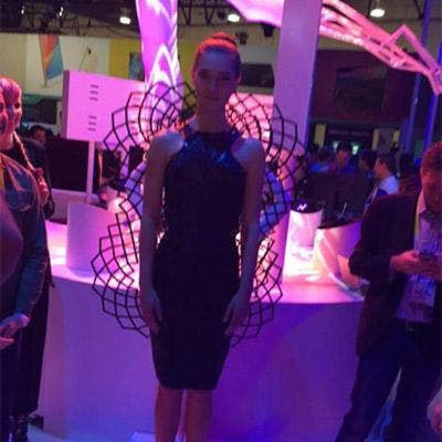 Intel showed off what it called the "adrenaline dress," a 3-D-printed, carbon-fiber design on the back of a dress.