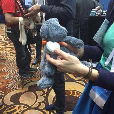 French manufacturer Oliba showed off an app-controlled device that effectively turns any stuffed animal into an app-enabled smart toy. Oliba's device wraps onto a stuffed animal and allows users to track their teddy bear via a companion app if it becomes lost. It also has a built-in night light and will play songs or stories to soothe children to sleep.