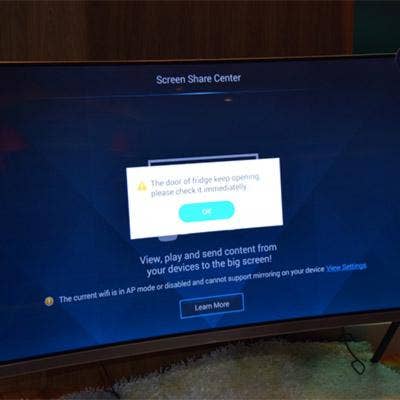 Nobody at CES was talking about connected home annoyances. But on this home theater HDTV’s screen of a connected home that we visited, a pop-up message alerted us: ’The door of the fridge keep opening, please check it immediatelly.’ [sic]