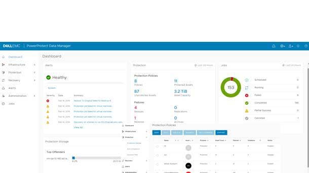 The PowerProtect software has native integration with VMware, Oracle, and other applications, and allows the development of a centralized governance and oversight capability while enabling long-term retention to public clouds.