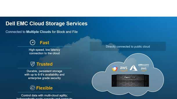 "[These will] help our customers extend their data centers from on-premises into the cloud," Grocott said. "Our Cloud Storage Services deliver the performance and resiliency of the Dell EMC storage that [customers] would expect on-prem, but now can leverage and take advantage of the agility of the public cloud's compute in an as-a-service model."
