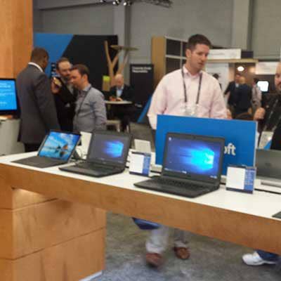 Dell says it is in a good position to take advantage of a consolidating PC market, and executives including Michael Dell and Vice Chairman and President of Client Operations Jeff Clarke, pointed out that while Dell may not have claimed the top spot in PC shipments in the latest quarter, its market share and revenue grew more than competitors like HP Inc. and Lenovo. Here, conference attendees at the Microsoft booth check out Dell Windows PCs, including the Latitude and XPS lines.