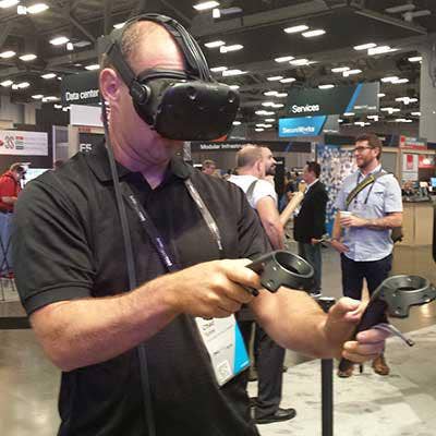 While Dell EMC's enterprise gear got most of the attention during the conference, Frank Azor, executive director of Dell Technologies' Alienware gaming PC unit got some stage time to talk about advances in virtual reality technology, including the system being used in this photo. Here, a conference attendee works on a truck in virtual reality. Azor explained that the system will allow future mechanics to learn their trade less expensively and allow pros to diagnose and repair vehicles more quickly and easily. The technology, Azor said, can be expanded to many verticals, including health care.
